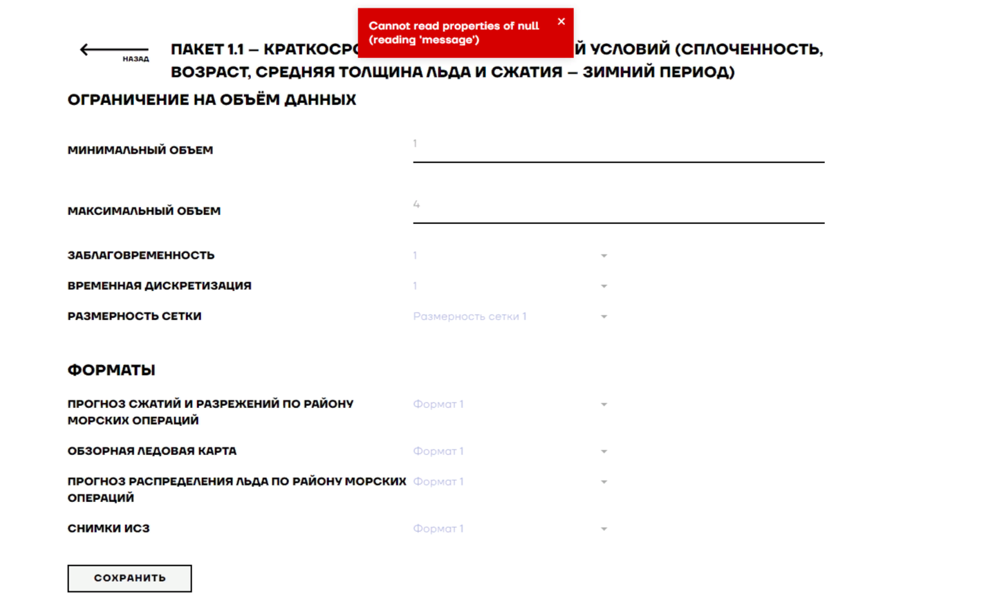Запрос закончился с ошибкой, но в ответе от сервера не вернулось сообщение которое нужно показать пользователю в ключе message.